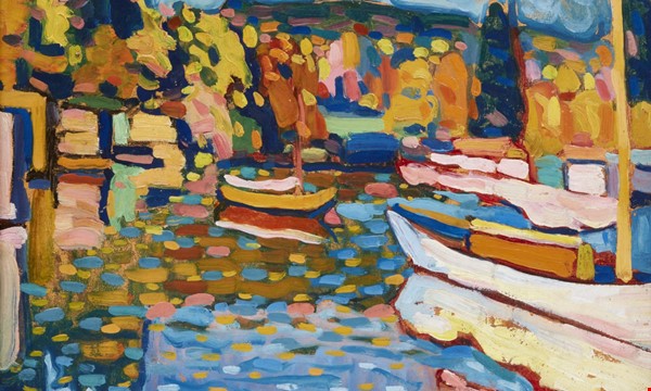 Image credit: Vassily Kandinsky, Russian, 1866-1944, Study for Autumn Landscape with Boats (detail), 1908, oil on board, 12 ×15 3/8 inches (30.5 ×40 cm). Lent by the Robertson Foundation, in honor of Julian and Josie Robertson.